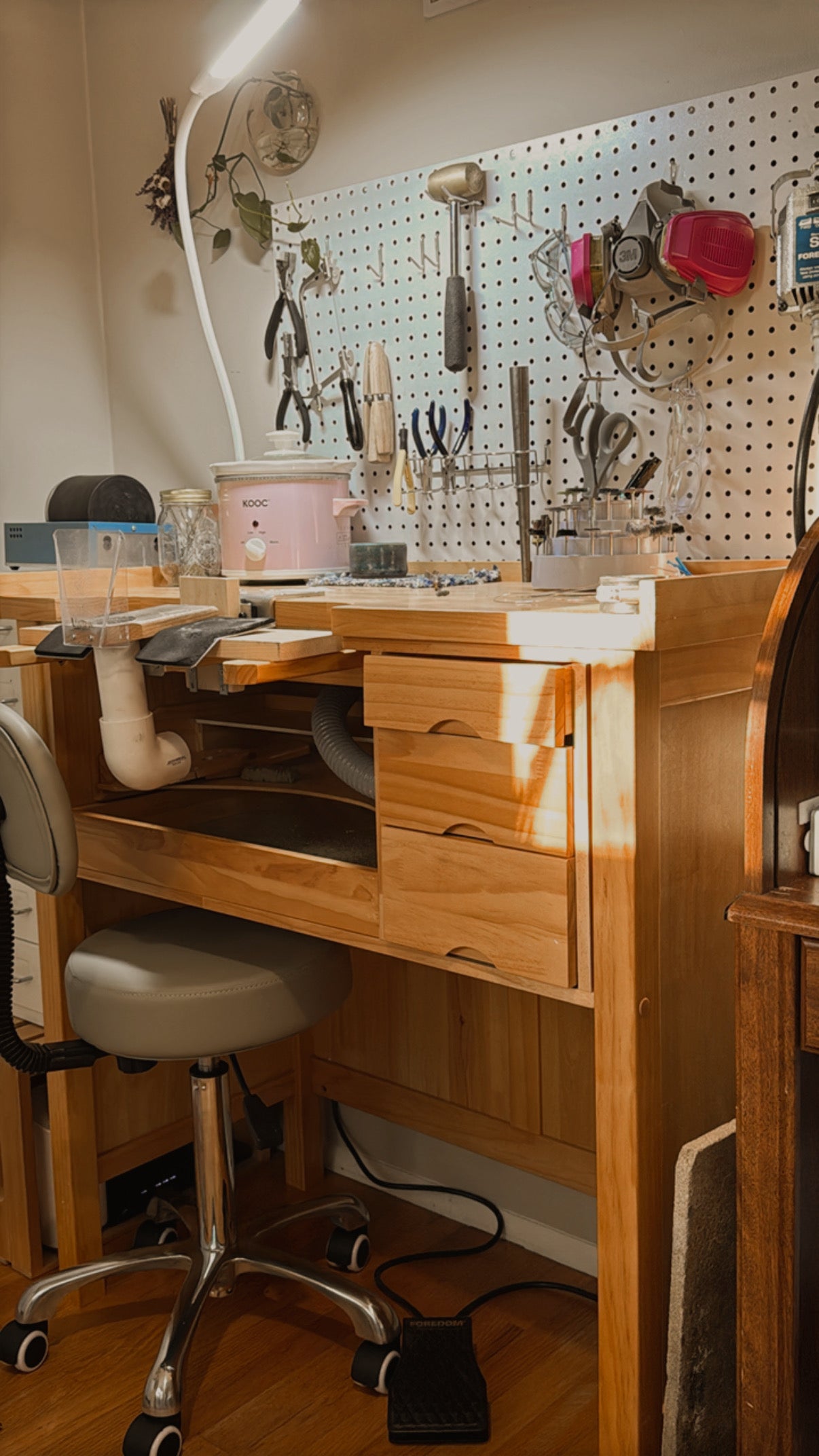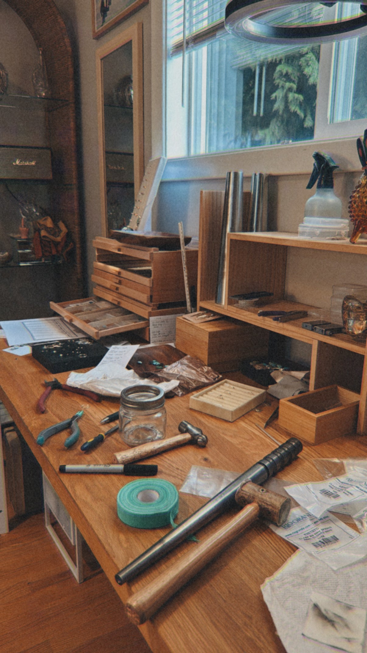 in late 2020, when I picked up a small torch and started experimenting with jewelry making. What began as curiosity quickly became a deep passion, and eventually, a business where I bring my own designs to life. I’m drawn to the individuality of turquoise, each stone with its own story to tell. I find great inspiration from my love of everything vintage, art deco, and the natural world around us.
