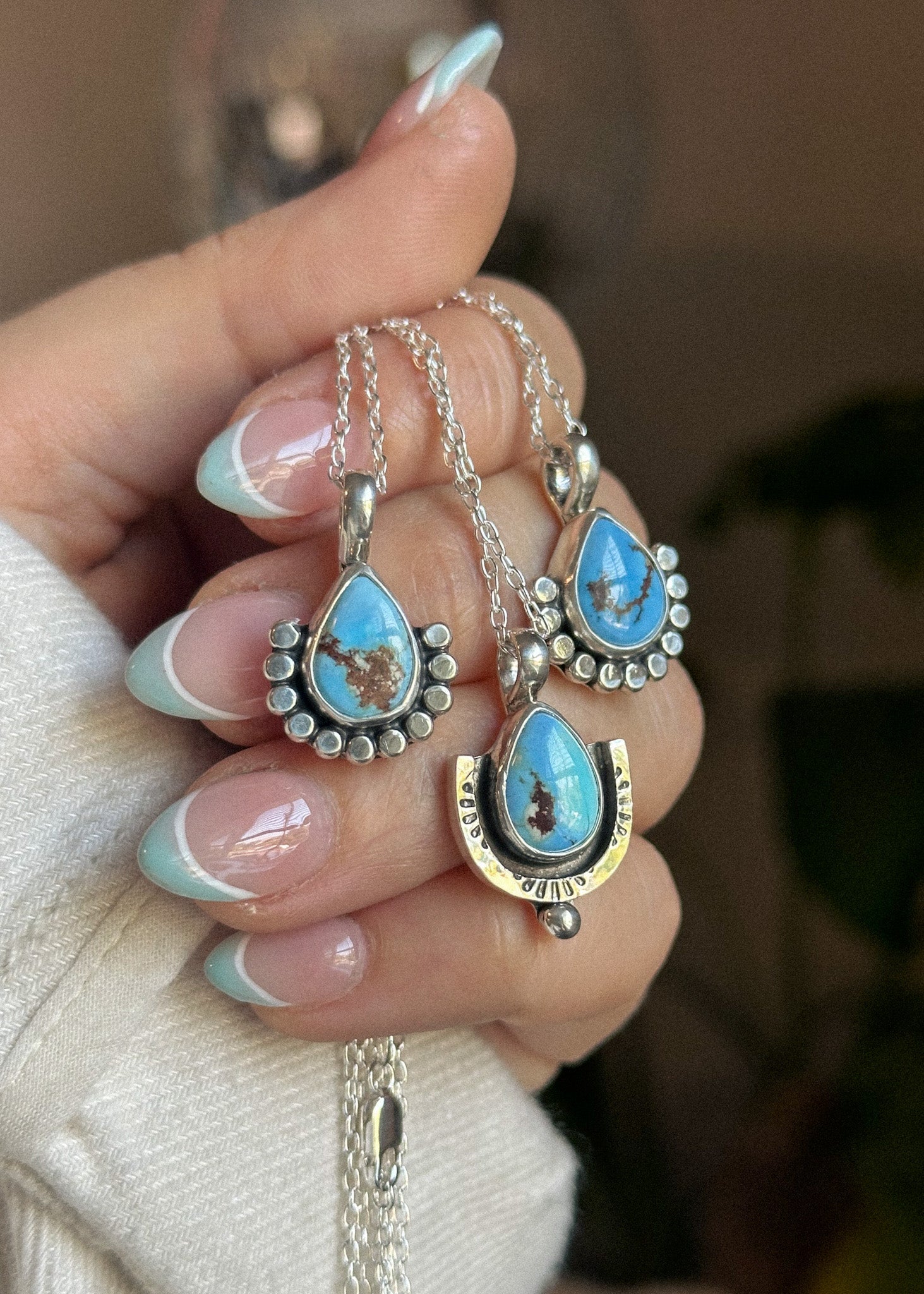 Light moisture exposure is fine, but I do not recommend submerging any jewelry with stones in water. Turquoise & Opals are porous stones, and over time water can permanently change characteristics with consistent exposure.